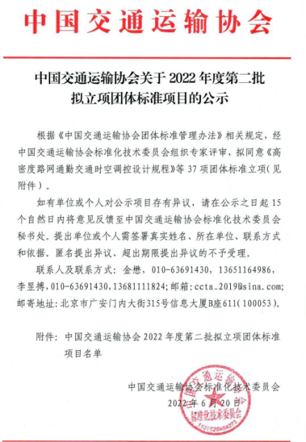 由中國交通運輸協會新技術促進分會發起的27項團體標準順利立項