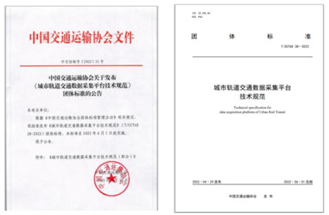 《城市軌道交通數據采集平臺技術規范》(T/CCTAS28-2022)由中國交通運輸協會新技術促進分會提出,中國鐵道科學研究院有限公司牽頭,聯合深圳地鐵建設集團有限公司、武漢地鐵集團有限公司、天津軌道交通運營集團有限公司、重慶市軌道交通(集團)有限公司、南京地鐵運營有限責任公司、北京城建設計發展集團股份有限公司、北京市地鐵運營有限公司、北京軌道交通路網管理有限公司、北京經緯信息技術有限公司、北京卓越信通電子股份有限公司、浙江省軌道交通運營管理集團有限公司、珠海優特電力科技股份有限公司、寧波市軌道交通集團有限公司、寧波工程學院、浙江數智交院科技股份有限公司、中鐵西南科學研究院有限公司、中南大學共同起草編制,于2022年6月1日起實施。