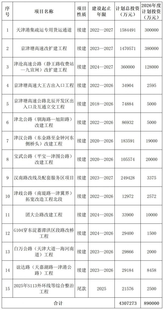 89億元!天津發布2026年公路項目投資計劃