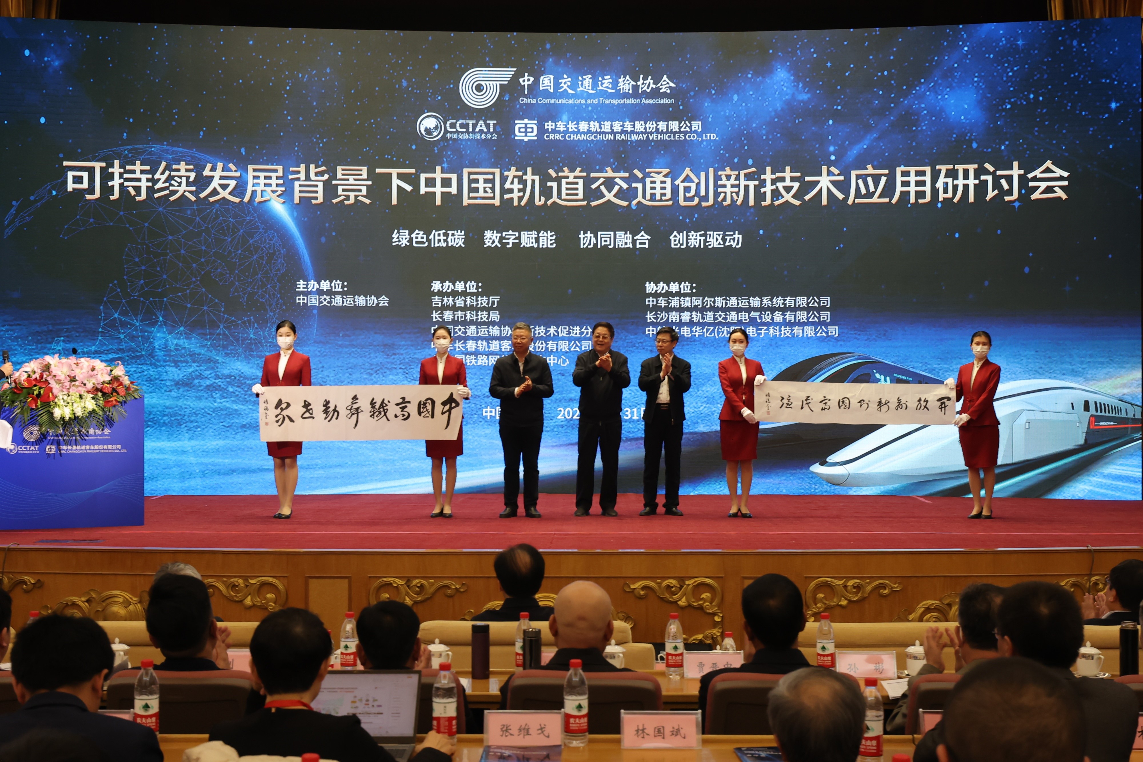 春回大地千峰秀,日暖神州萬木榮。由中國交通運輸協會主辦,吉林省科學技術廳、長春市科學技術局、中國交通運輸協會新技術促進分會、中車長春軌道客車股份有限公司、北京國鐵路網信息咨詢中心共同承辦,中車浦鎮阿爾斯通運輸系統有限公司、中航光電華億(沈陽)電子科技有限公司、長沙南睿軌道交通電氣設備有限公司協辦,以“綠色低碳數字賦能協同融合創新驅動”為主題的“可持續發展背景下中國軌道交通創新技術應用研討會”在北國春城長春隆重召開。來自全國各地從事軌道交通技術研發、裝備制造、工程建設、運營管理的相關政府部門、科研機構、高等院校、企事業單位的專家學者、專業人士共計350余人參加會議,近2000人通過線上直播方式關注大會開幕式盛況。