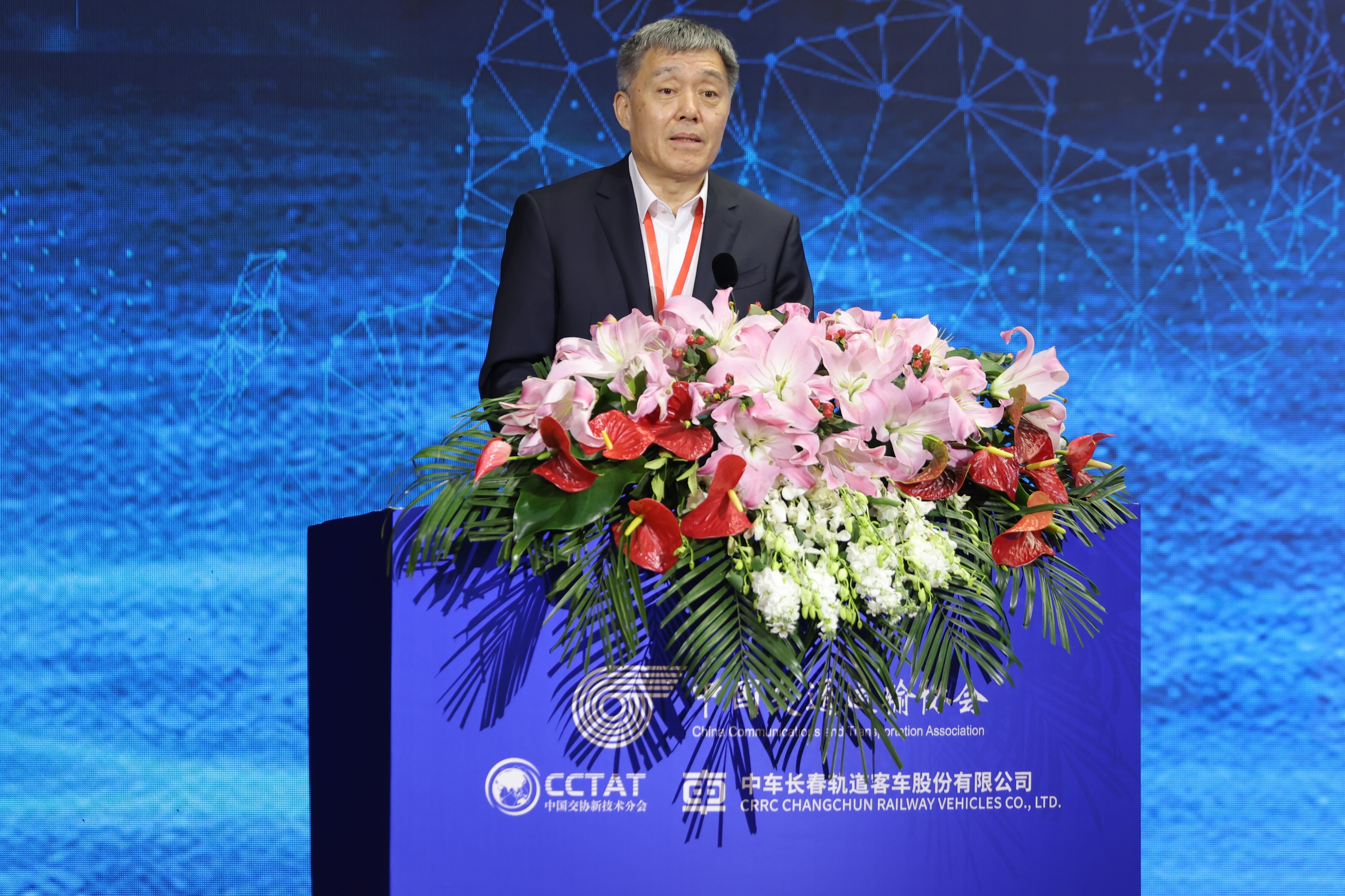 中國交通運輸協會會長、原鐵道部黨組成員、副部長胡亞東首先致辭。胡亞東會長首先對會議的順利召開表示熱烈祝賀,并期望通過本次會議,搭建院士專家、各級政府、領軍企業和行業各界互動交流和深化合作平臺,加快軌道交通創新鏈、產業鏈、人才鏈、政策鏈和資金鏈深入融合,賦能軌道交通產業發展創新。胡亞東會長表示,中國交通運輸協會也將繼續秉持“四個服務”宗旨,全力發揮政府和企業間的橋梁紐帶、參謀助手作用,利用協會科學技術獎、團體標準編制、科技成果評價、高端會議會展、成果轉化推廣等多種優勢資源,為軌道交通創新發展持續做出自身應有貢獻。胡亞東會長指出,中國中車已經成為我國高端裝備制造業的國家名片,希望中車人進一步激發科技創新活力,發揮并不斷強化整體優勢,持續深入推進軌道交通創新技術應用,努力產出更多標志性、引領性的軌道交通科技創新成果,創造新的、更大的發展奇跡,持續為交通強國建設貢獻卓越力量!